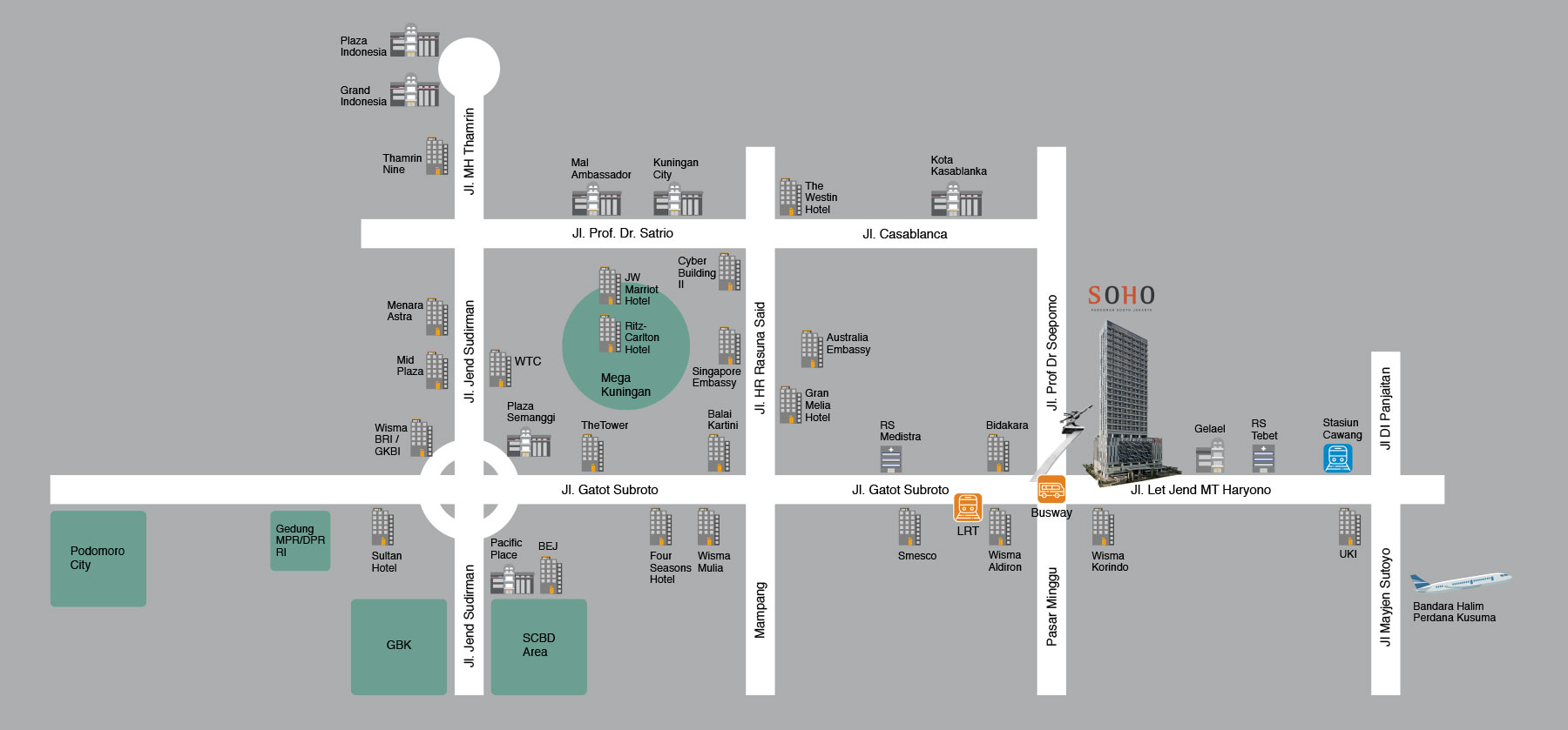 SOHO Pancoran, South Jakarta adalah proyek terbaru dari Agung Podomoro Land (APL) di Pancoran Jakarta Selatan. SOHO merupakan Small Office Home Office, konsep hunian multi fungsi dimana bisa dijadikan tempat tinggal (residensial) ataupun tempat usaha perkantoran (office) ataupun gabungan ke-2nya.